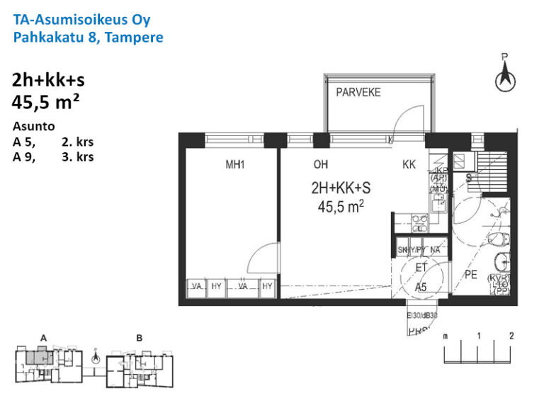 Tvårumslägenhet | 2h+kk+s | 45,5 m²