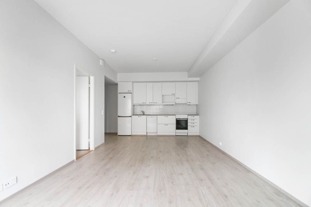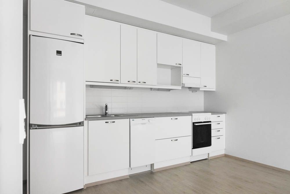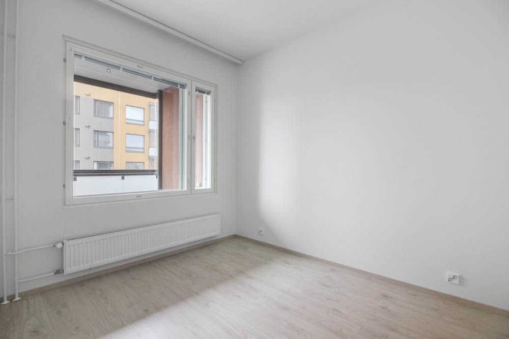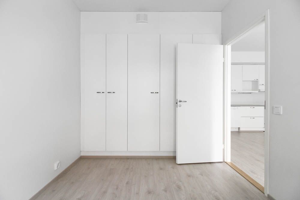 Sovrummet och den separata hallen erbjuder gott om förvaringsutrymme för vardagliga behov. Kökets nedre lådor förbättrar förvaringen och förbättrar användbarheten. Tack vare den tydliga planlösningen kan utrymmet kompletteras med till exempel en flyttbar köksö, vilket ger mer arbets- och förvaringsutrymme.