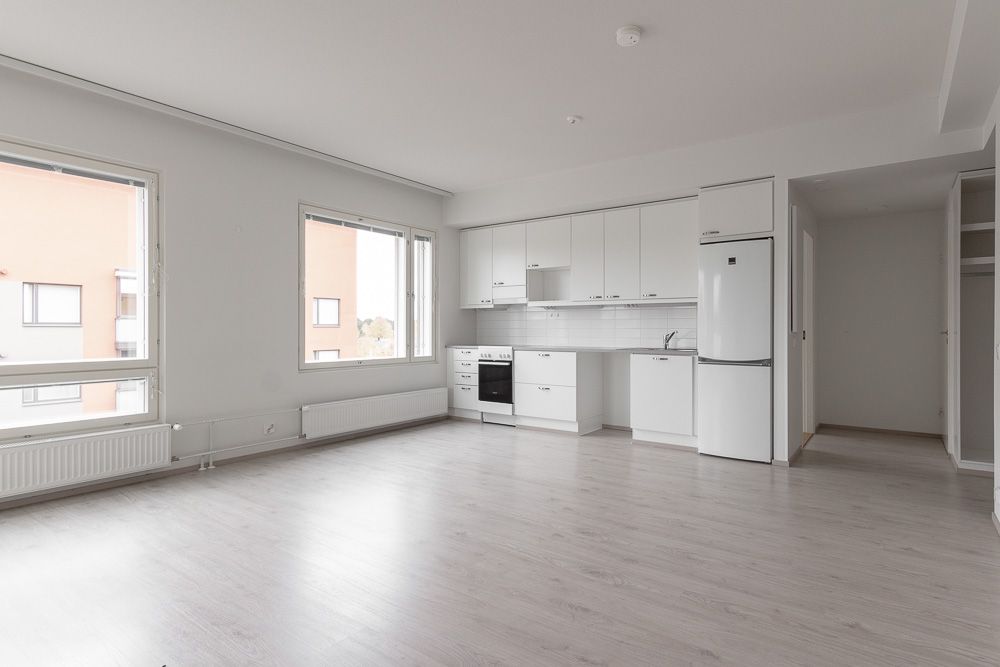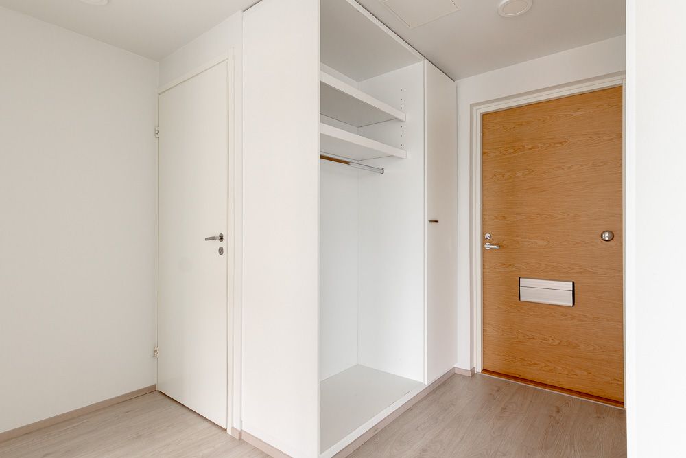 Lägenhetens sovrum är placerade separat från varandra, vilket möjliggör en lugn och mångsidig användning. Det finns gott om förvaringsutrymme i både sovrummen och hallen. Kökets nedre lådor förbättrar förvaringen och förbättrar bekvämligheten. Vardagen underlättas också genom reservation av diskmaskin och tvätttorn. Bilderna i annonsen är från en liknande lägenhet i fastigheten, där ytmaterialen är desamma.