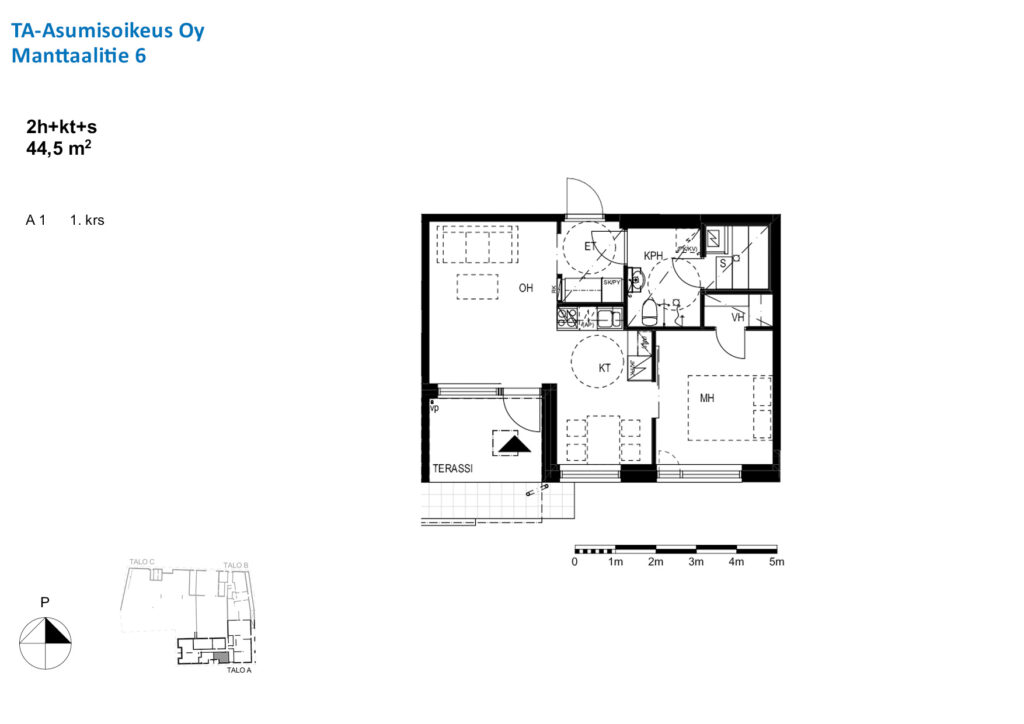 Tvårumslägenhet | 2h+kt+s | 44,5 m²