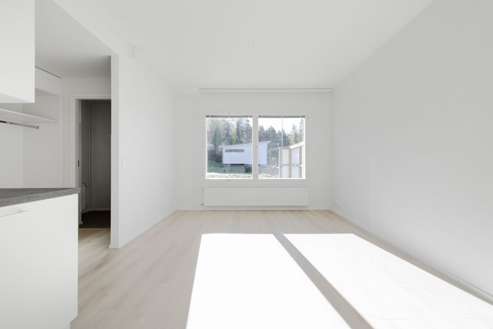 I lägenheterna är stilrena laminatgolv och tvättrum kaklade med modernt klinkerval. Köken har keramisk spis som standard och de större lägenheterna har två isfrysskåp. Tvättrummen har både spegel- och handfatsskåp. Alla lägenheter har egen bastu. Persienner installeras på fönstren. Lägenheterna i hyreshuset har balkong. Radlägenheterna har egna gårdar och radlägenheterna i två plan har även fransk balkong på övervåningen. Parkeringsplatser kan reserveras för boende.