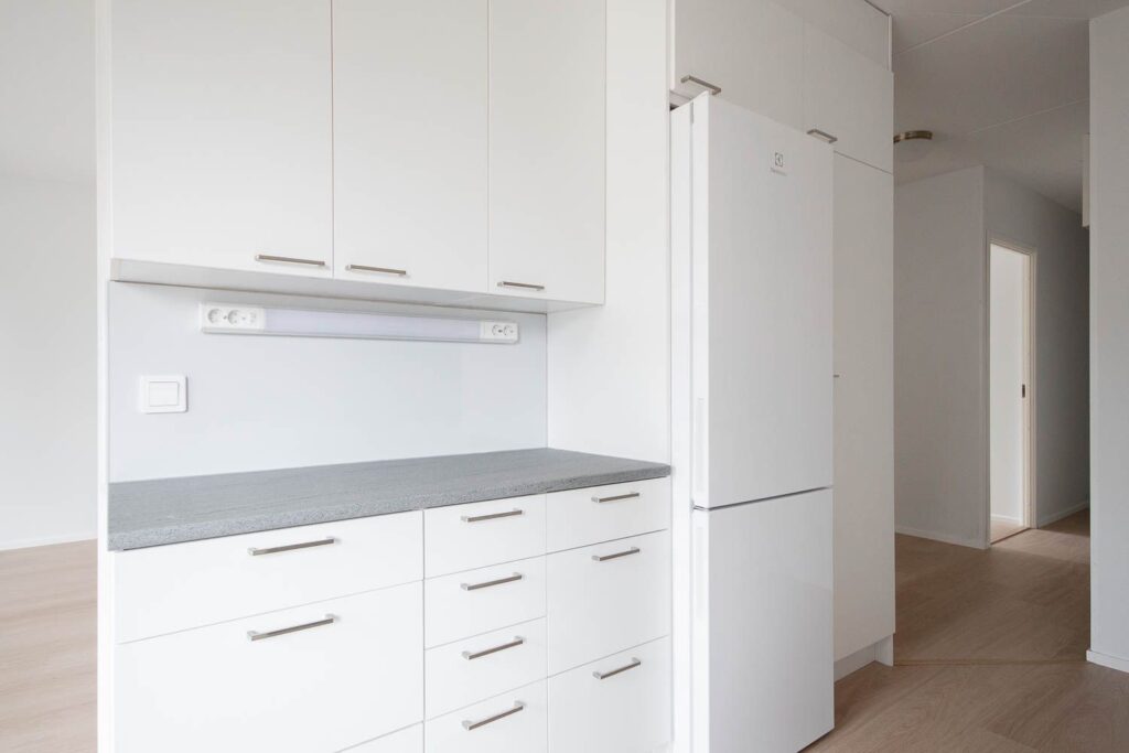 Uthyres en trerumslägenhet med bra planlösning i ett utmärkt läge. Lägenheten har laminatgolv och ett kaklat badrum. Det ljusa vardagsrummet har utgång till en rymlig balkong. Sovrummen har bekväma förvaringsutrymmen och köket har plats för ett större matbord.