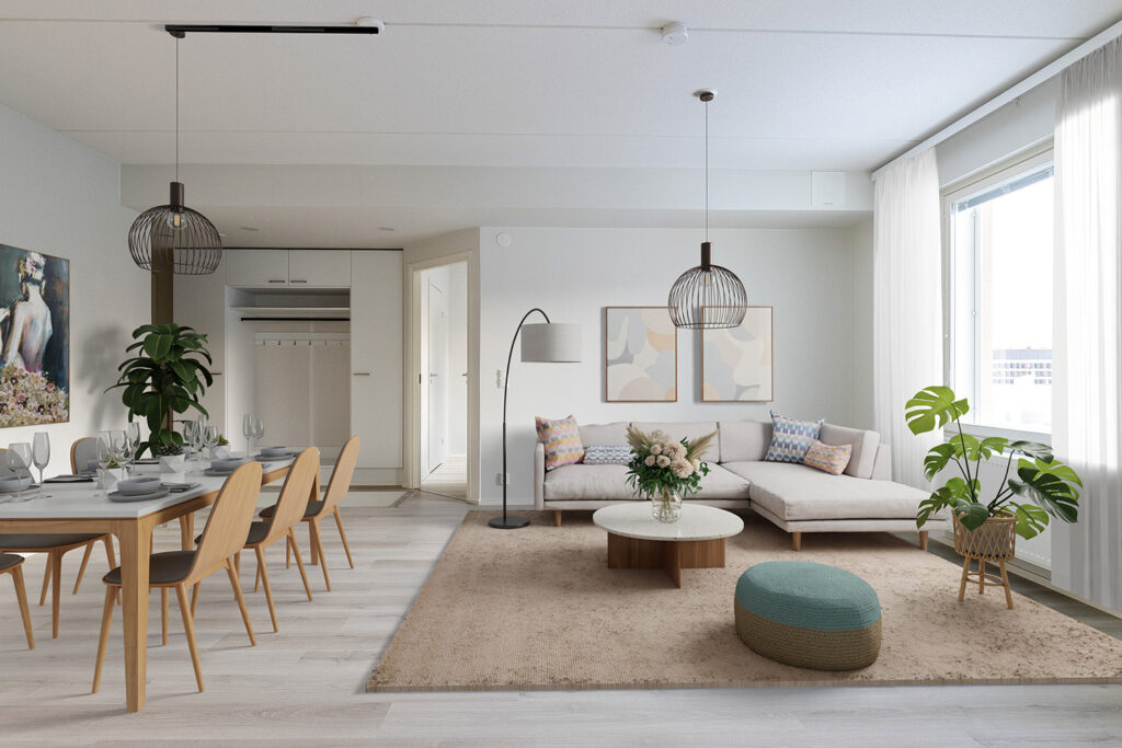 Du kan bekanta dig med lägenheten först och först därefter bestämma om du vill göra ett avtal med oss. För bostadsrättssökande lägenhet försöker vi ordna en möjlighet för dig att lära känna lägenheten redan under anbudsomgången. Till viss del anordnar vi även allmänna visningar i våra lediga lägenheter. Tyvärr går det inte att ordna visningar i fastigheter under uppförande på samma sätt som i fastigheter som redan är färdigställda.