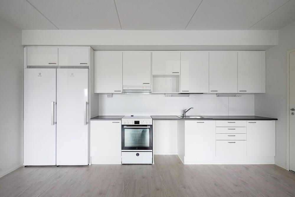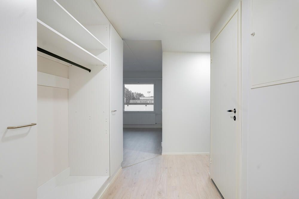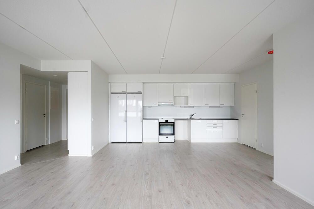 En elegant familjelägenhet på översta våningen finns tillgänglig i ett hus som färdigställdes för ett år sedan. Ett ljust och funktionellt hem erbjuds. Lägenheten har en mycket tydlig rumslösning: tre sovrum är lugnt belägna i sina egna sektioner, och vardagsrummet och det öppna köket bildar ett rymligt, enhetligt boendeutrymme. Hemmets hjärta är det stora vardagsrummet, som har direkt tillgång till den inglasade balkongen. Lägenheten har en separat toalett och ett rymligt badrum med egen bastu. Det finns gott om förvaringsutrymme i sovrummens skåp och en separat klädkammare. Hallen är rymlig och ökar vardagsfunktionaliteten. Bilderna visar en liknande lägenhet på nedervåningen. Detta hem är idealiskt för en familj som uppskattar modernt boende, naturligt ljus och en effektiv planlösning i ett nytt bostadsbolag. En parkeringsplats med eluttag finns att hyra på parkeringsplatsen.