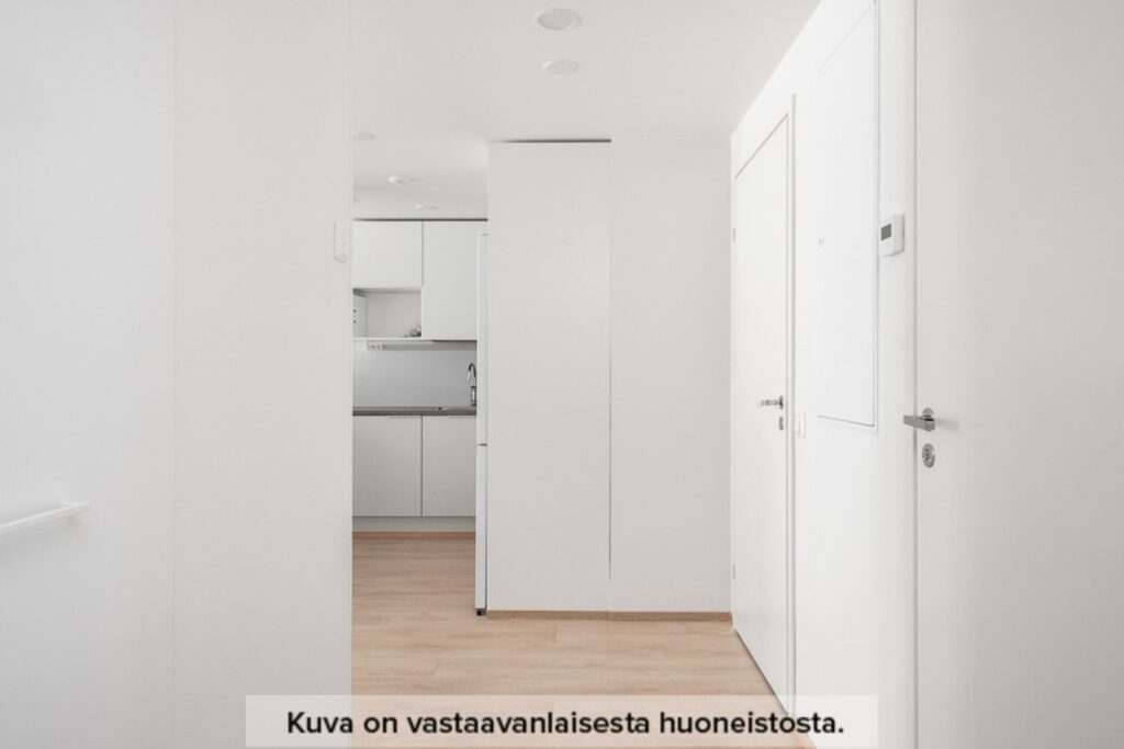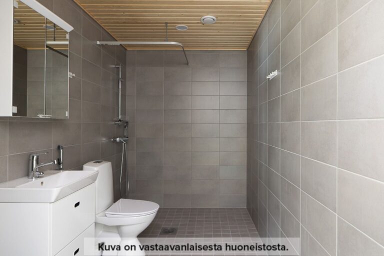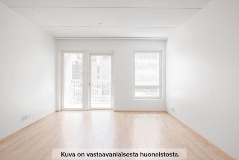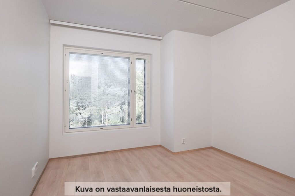 Vardagsrummet är rymligt och inbjudande, med plats för både matplats och avkoppling. Fönstren släpper in gott om naturligt ljus och du kan justera mängden ljus efter behov med persiennerna. Badrummet har utrymme för både tvättmaskin och tvätttorn.