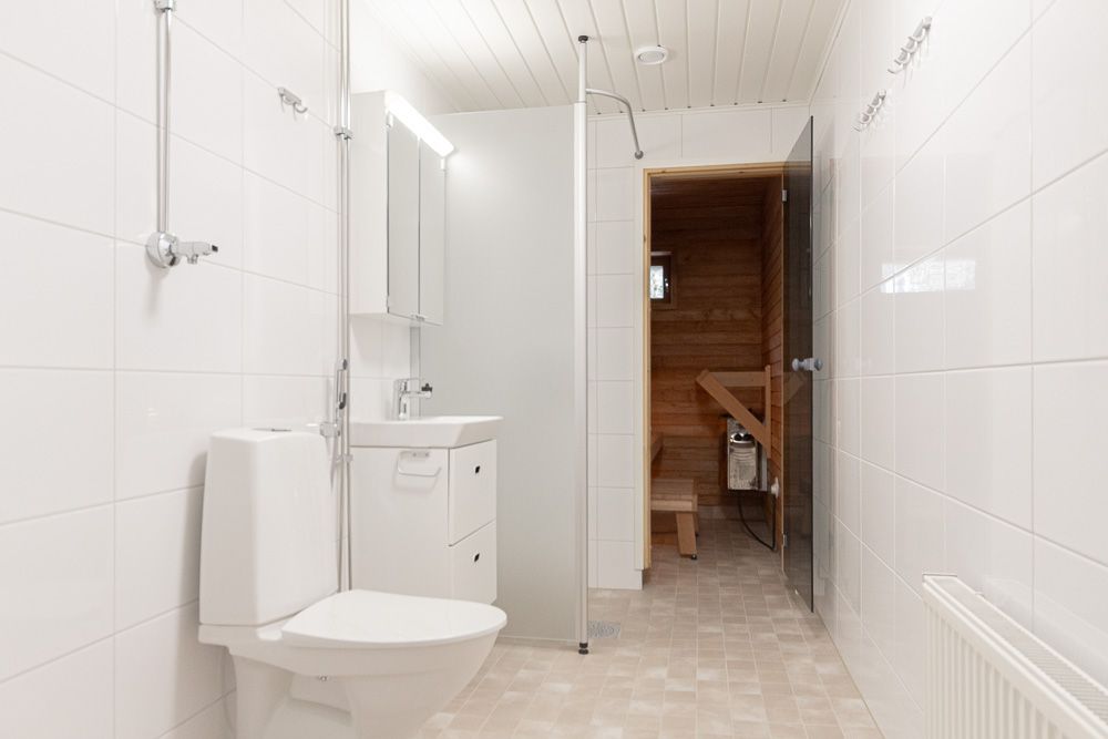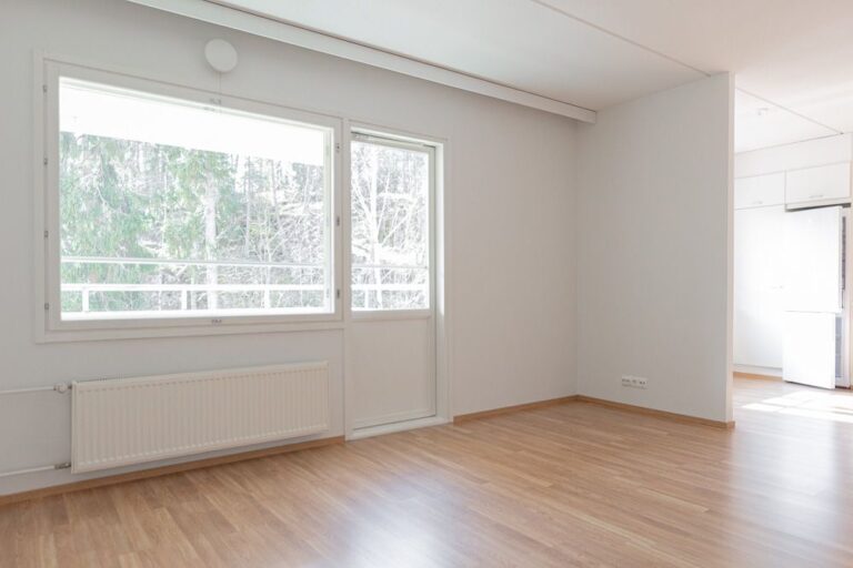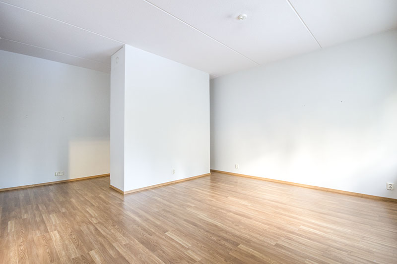 Lägenheten har ett separat kök, som är begränsat till ett eget utrymme men ändå praktiskt anslutet till vardagsrummet. Det rymliga vardagsrummet öppnar upp mot en balkong, vilket ger ytterligare utrymme och rymlighet. Balkongen öppnar sig mot Kakskerrantie, men erbjuder ändå en egen lugn och ro. Sovrummet ligger på andra sidan av lägenheten och erbjuder en egen lugn och gott om förvaringsutrymme. Badrummet är rymligt och har egen bastu. Det finns praktiskt placerade förvaringsutrymmen i hallen. En tydlig planlösning, rena ytmaterial och stora fönster gör lägenheten ljus och rymlig.