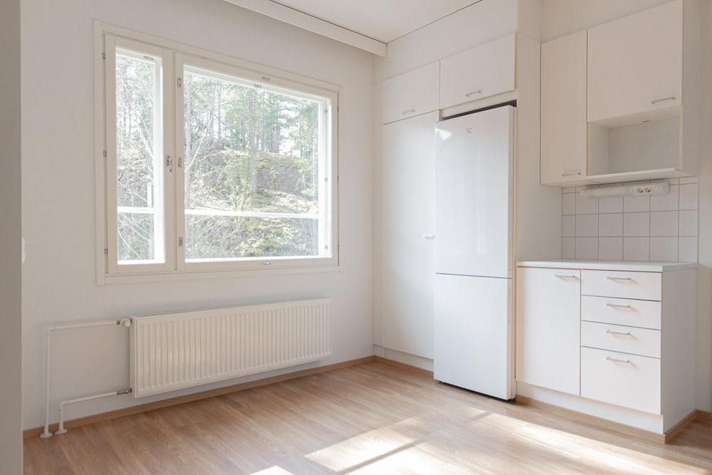 Denna tvårumslägenhet på översta våningen i en trappa utan hiss erbjuder en tydlig och funktionell planlösning i ett mysigt läge i Vihuri, Åbo. En snygg och välskött lägenhet med ekfärgat laminatgolv och vitmålade väggar.