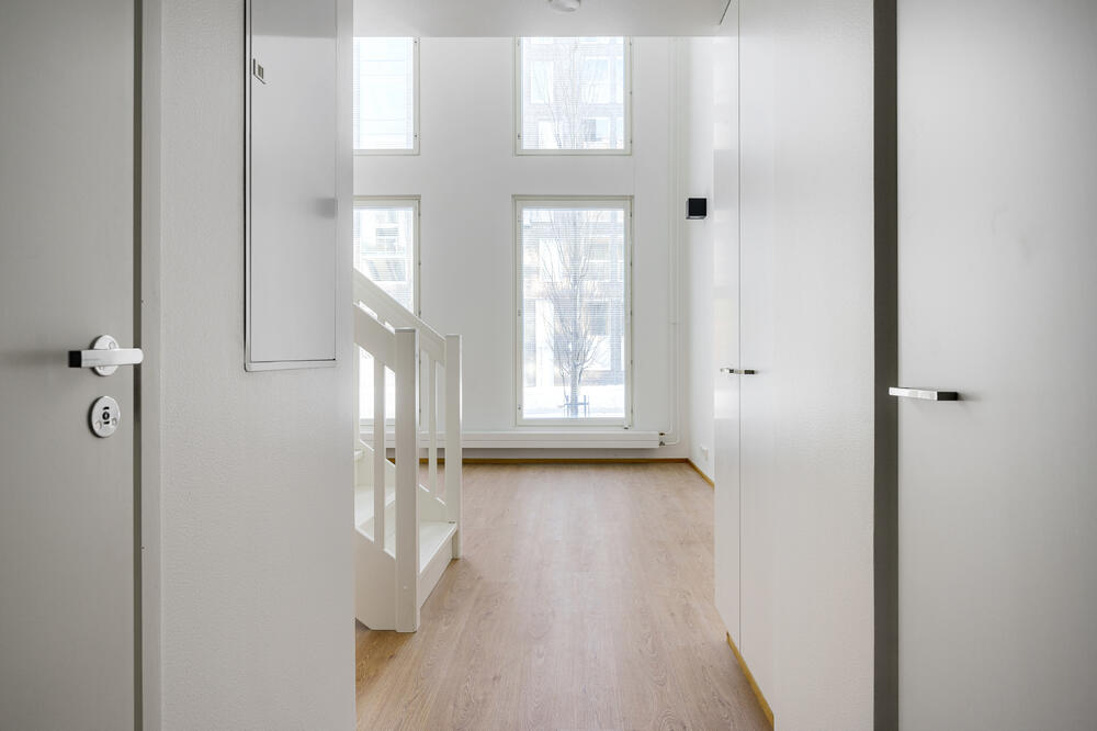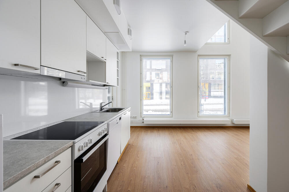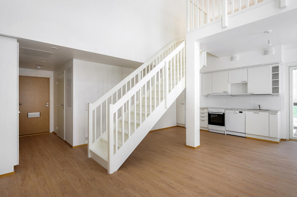 Till salu finns en modern och funktionell 57,5 m² tvåvåningslägenhet med 2 sovrum + badrum + loft i Kivistö, Vanda. Lägenheten har ett rymligt vardagsrum och pentry på första våningen och ett tyst sovrum och loft på andra våningen. Det höga utrymmet och de stora fönstren ger gott om ljus och rymd till bostaden.