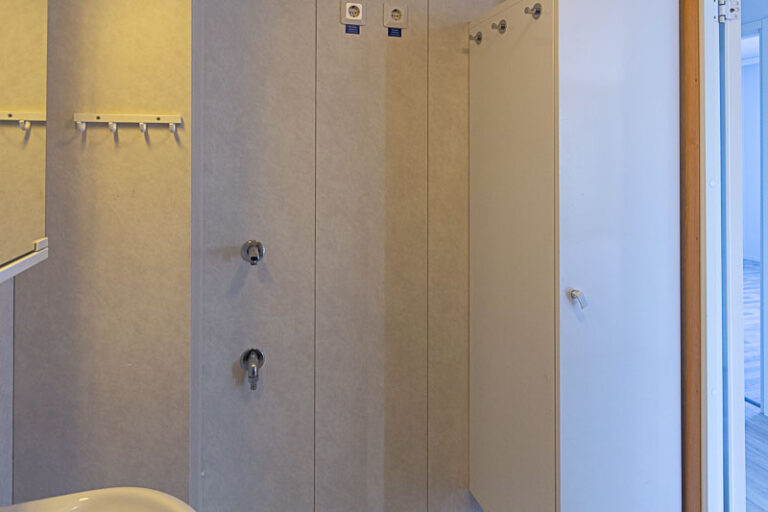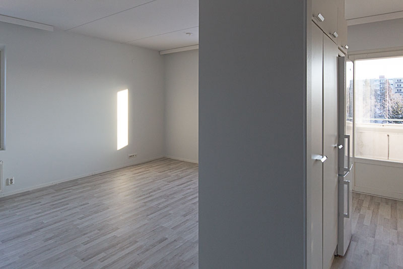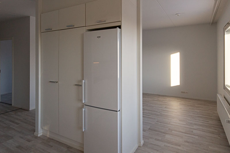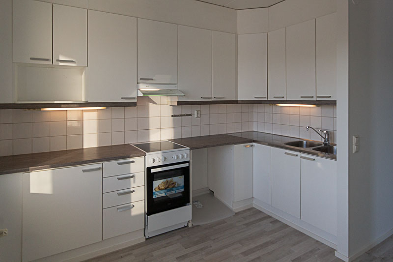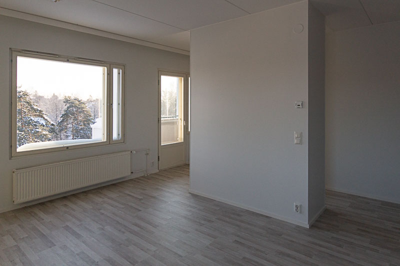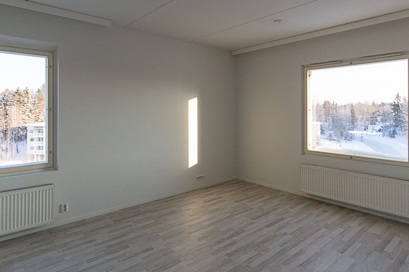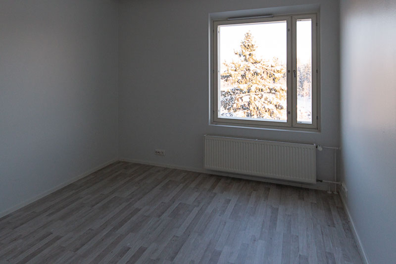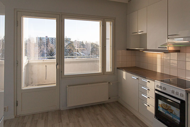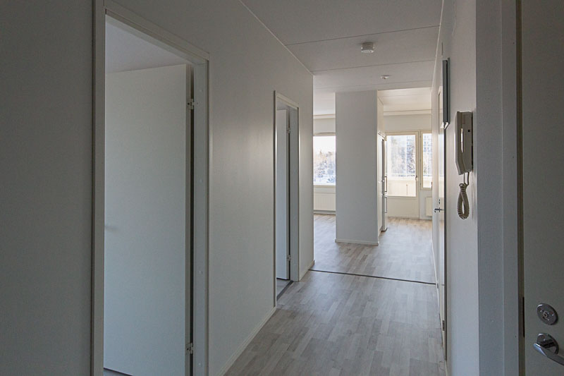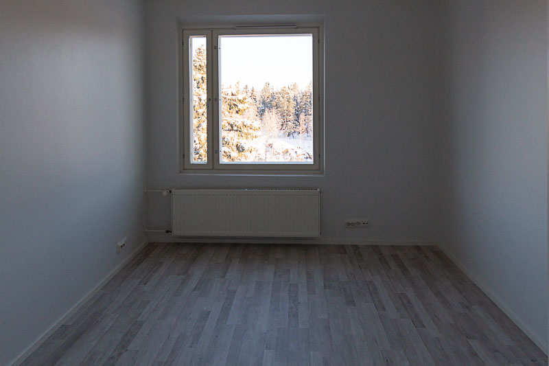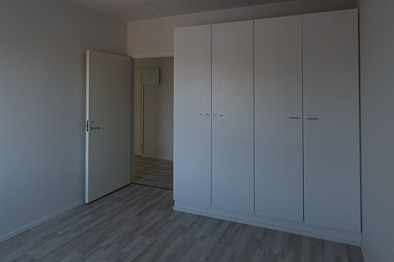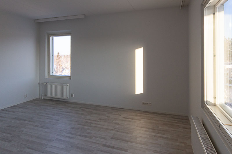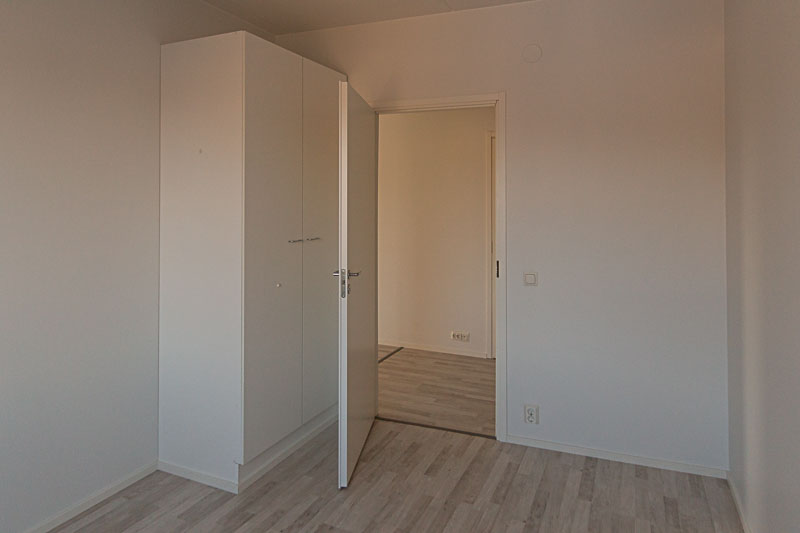 Lägenheten är en hörnlägenhet, så naturligt ljus flödar in från två håll. Den tydliga planlösningen och de lättmöblerade rummen gör hemmet funktionellt för både vardag och fritid.