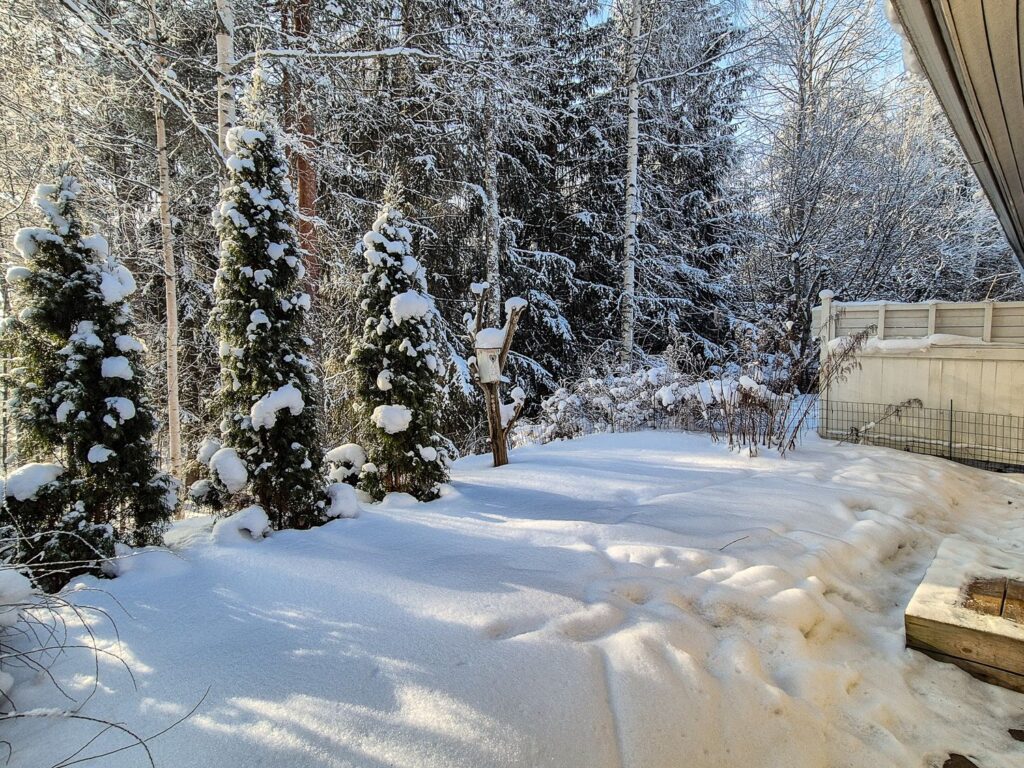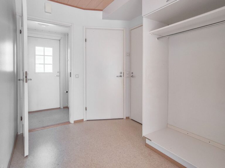 Förvaringsutrymme finns även i hallen och den stora klädkammaren i anslutning till sovrummet. Boendekomforten förstärks av en privat bastu, en separat toalett och en innergård i söderläge med fridfull utsikt över skogen.