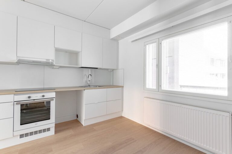Köket har induktionshäll, fullhöjdskyl och frys samt plats för diskmaskin och mikrovågsugn. Det finns gott om plats för ett matbord under köksfönstret. Det rymliga badrummet har plats för tvättmaskin, och dessutom finns en gratis tvättstuga i samma byggnad. Ytterligare komfort i boendet ges av en privat bastu, en inglasad balkong och en separat toalett. Lägenheten har laminatgolv och gott om garderobsutrymme.