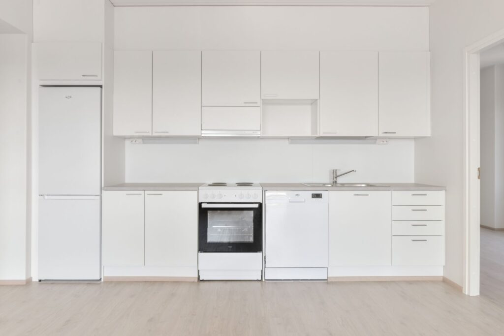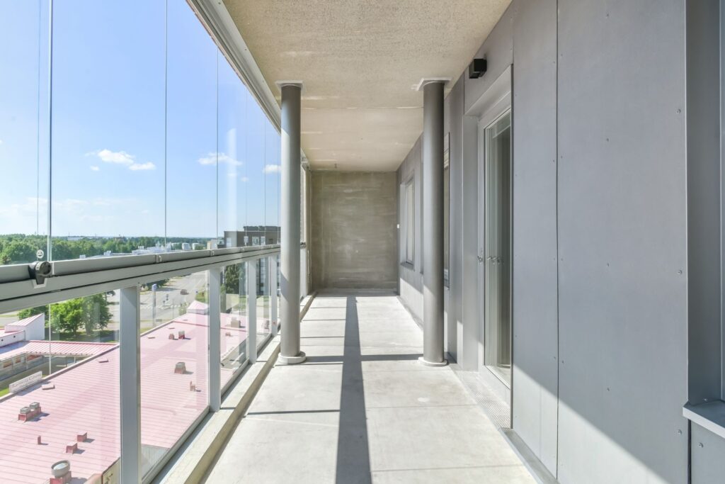 Fönstren har persienner. Vissa lägenheter har fransk balkong och i andra lägenheter är balkongerna inglasade. Golven i vardagsrummen är laminat och väggarna i lägenheterna är målade. Väggar och golv i badrummen är kaklade.