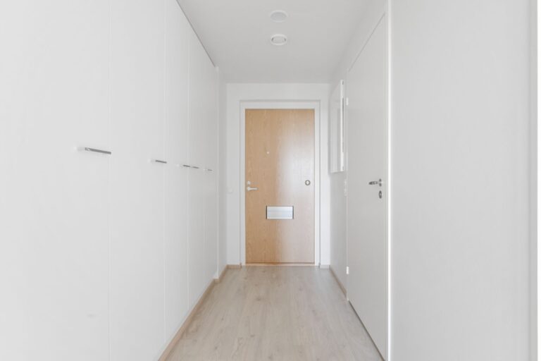 En rymlig kvadratmeter blir tillgänglig i ett seniorboende i Höyhtyä. Det finns gott om förvaringsutrymme i hallen och varje sovrum. En privat bastu och en inglasad balkong som löper längs hela lägenhetens bredd ökar boendekomforten.