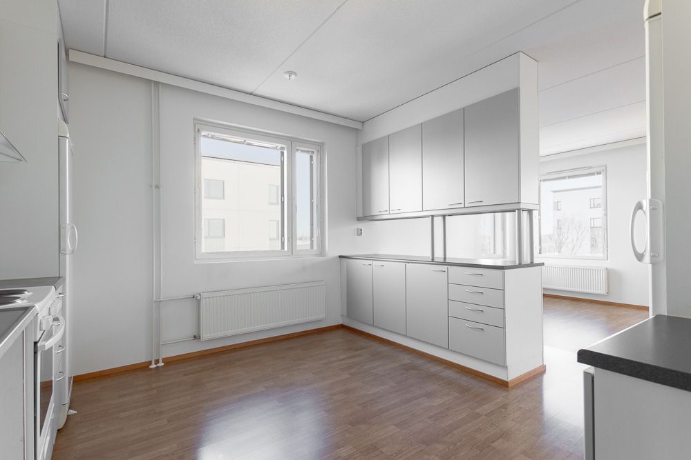 En rymlig familjelägenhet på husets fjärde våning. Det ljusa köket har gott om skåputrymme, en imponerande köksö och gott om plats för ett stort matbord. Det rymliga vardagsrummet erbjuder en bekväm loungedel och det finns tillgång till en stor inglasad balkong. Sovrummen har gott om förvaringsutrymme och boendekomforten kompletteras av en bastu med fönster och en separat toalett. Bilderna i annonsen visar en liknande lägenhet i fastigheten.