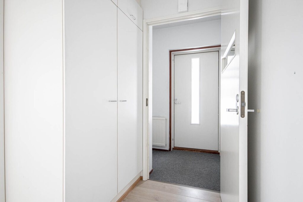 Det rymliga köket har gott om plats för ett matbord, vilket lämnar gott om plats i vardagsrummet för avkoppling och umgänge. Sovrummet har gott om förvaringsutrymme. En separat toalett och ett praktiskt grovkök gör vardagen smidigare. I den privata bastun i anslutning till tvättstugan kan du njuta av sköna ångbad när du vill.