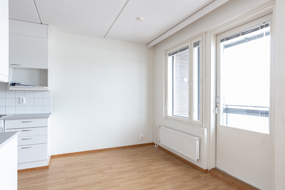 En rymlig triangel på översta våningen blir tillgänglig på Kelokatu. Kök, matplats och vardagsrum är en enhet och sovrummen ligger bredvid varandra i ena änden. Lägenheten har också en bastu, en inglasad balkong och en garderob. Det är lätt att ta sig runt i staden med kollektivtrafik och det finns även parkeringsplatser att hyra på gården. Seppäläs omfattande service finns inom syn- och gångavstånd.