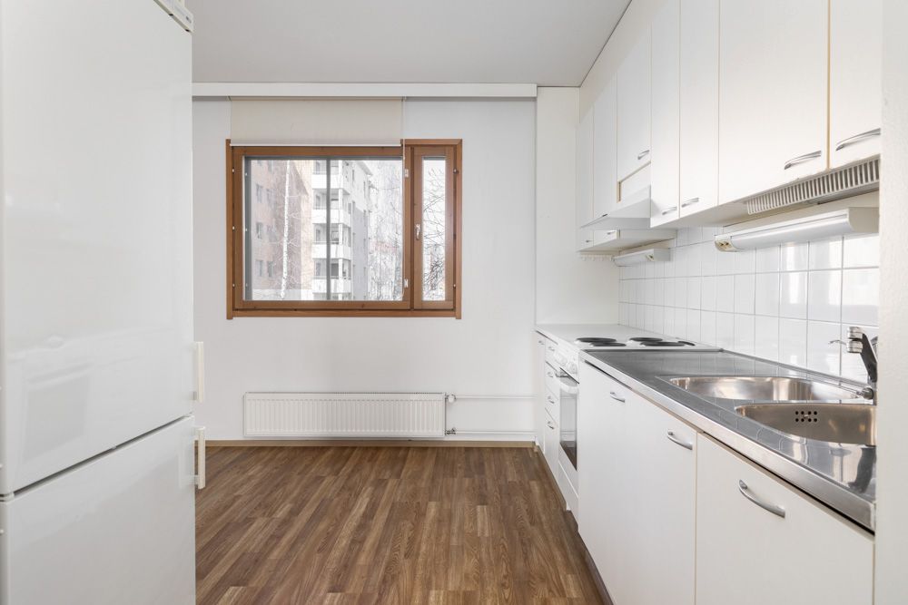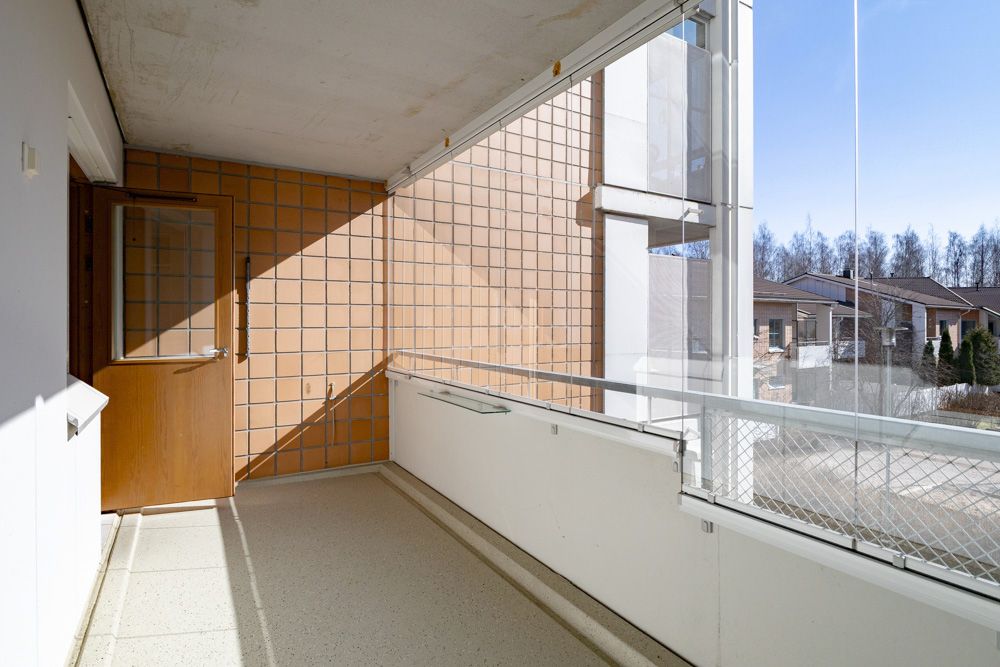 Ljus genomgående triangel på andra våningen från hissbyggnaden. Det rymliga köket och vardagsrummet rymmer enkelt matbord och soffgrupp. Lägenheten har två sovrum av god storlek. Det rymliga vardagsrummet har utgång till en inglasad balkong med utsikt över innergården. Ett renoverat badrum med bastu och en separat toalett bidrar till boendekomforten. Vardagsrummen har laminatgolv.